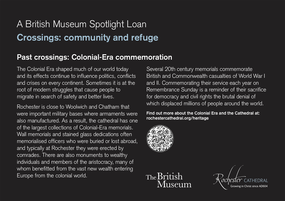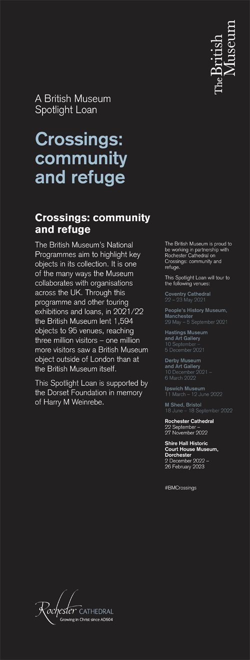 Following British Museum guidelines, we were commissioned to create a series of panels which tell the story of migration and the growing crises which are symptomatic of the pressures of global inequality. Following the banners revealed the historic background and the role of Rochester Cathedral as a safe haven.