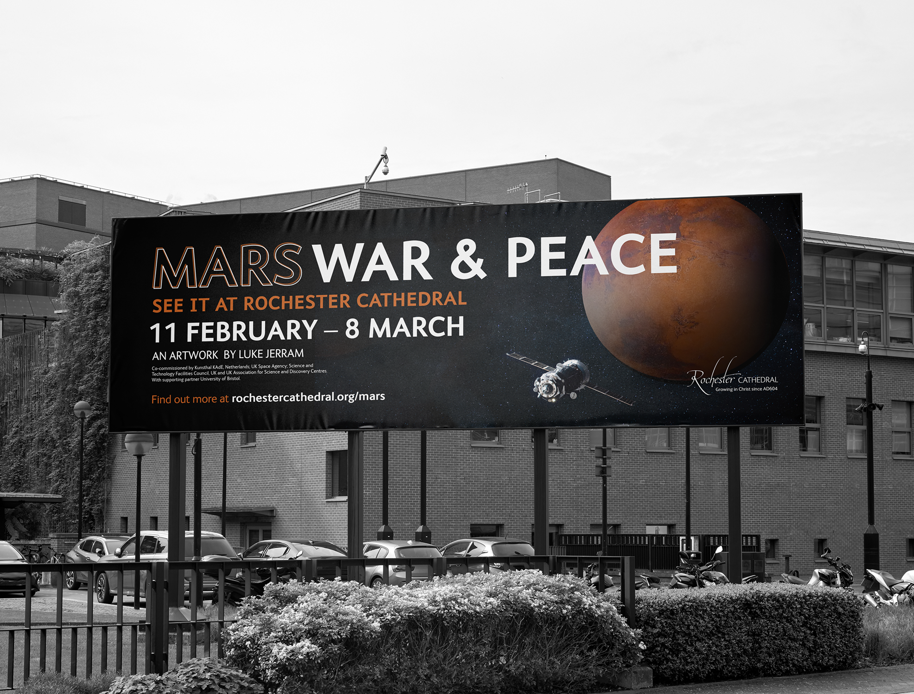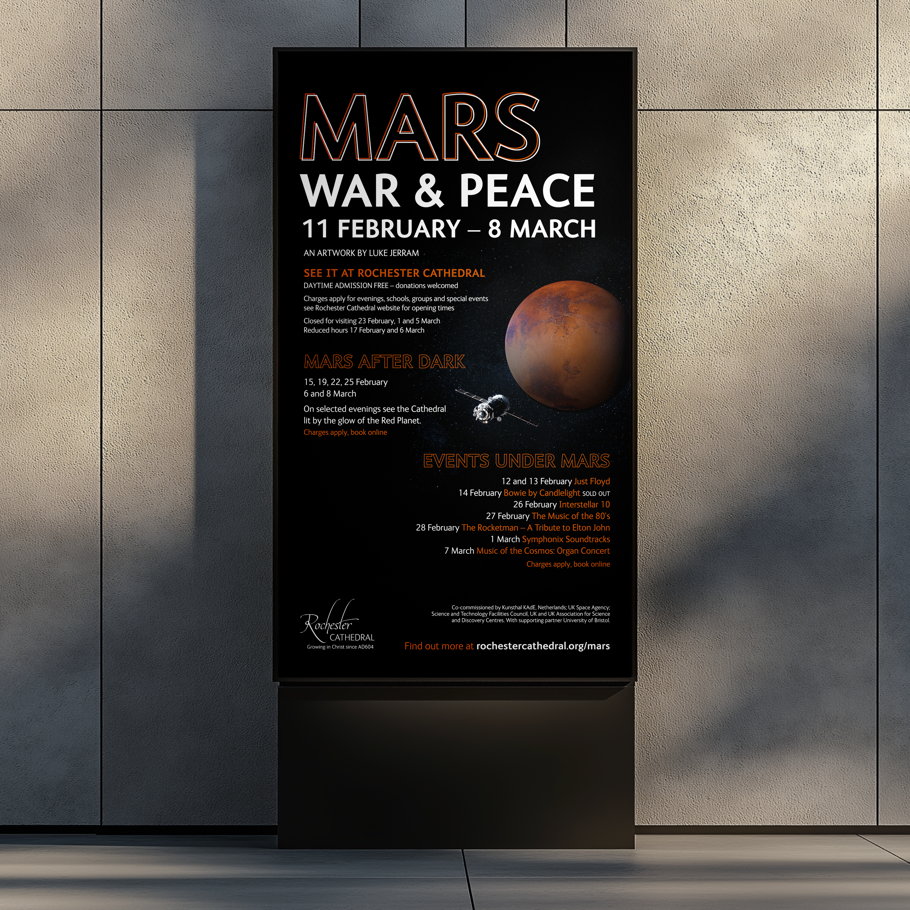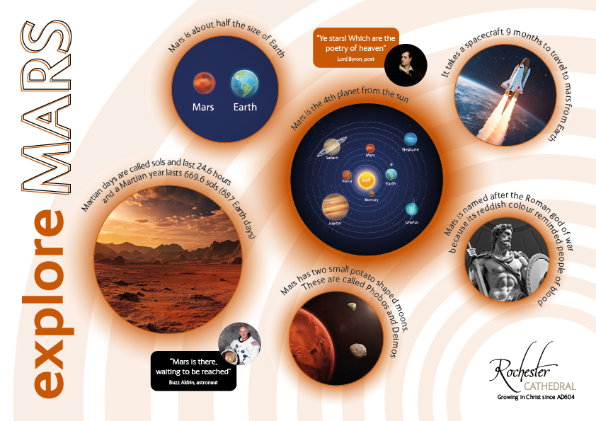Design a creative scheme which could be applied to both educational resources and marketing of the 2025 Mars exhibition at Rochester Cathedral in Kent.
